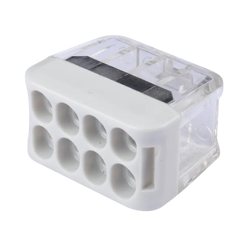 2P 3P 4P 5P 6P 8P Conectores rápidos de fio de passagem sem alavancas são usados ​​para iluminação e conexão de fios de soquete e plugue. Os conectores de fio rápido são produtos de conexão de fio seguros, de manutenção somos fáceis de conectar para economizar tempo de trabalho e custos de mão de obra.
