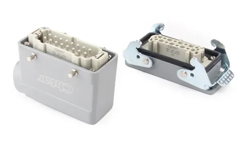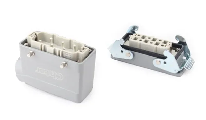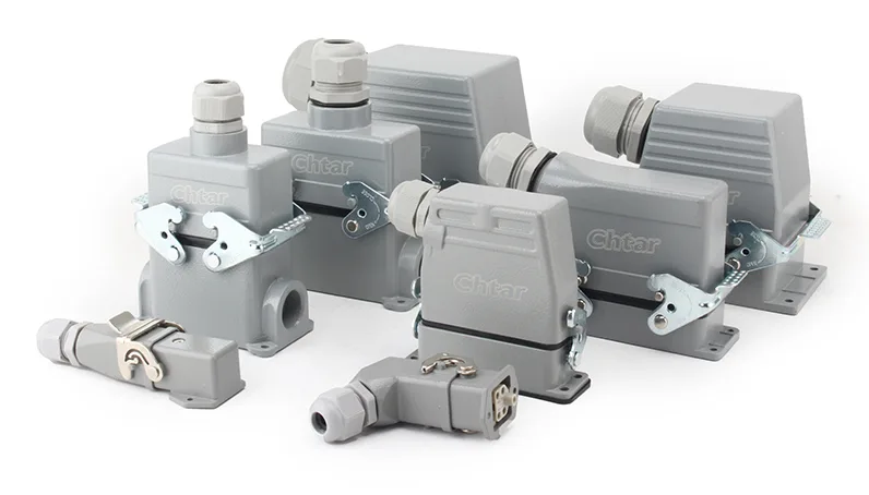 CHTARpode fornecer uma gama completa de conectores para serviços pesados. Existem caixas para combinar com conectores de serviço pesado da série HA, HE, HD, HEE e HDD e assim por diante. Eles também trabalham com pinos diferentes, como 3, 4, 5, 6, 10, 16, 24, 32 e 48 e assim por diante. A fábrica pode fornecer conexões de direção de fio diferentes.
