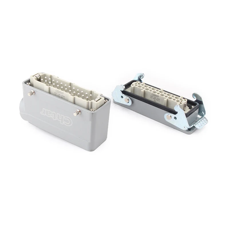 Este conector durável de plug-in 16A HE-024-F e HE-024-M para serviços pesados ​​da CHTAR vem com conectores fêmea e macho. É compatível com o conector resistente H24B do HDC-HE-024. É feito de uma caixa de PC resistente e pinos de latão banhados a prata. Os pinos banhados a prata fornecem excelente condutividade e vantagens operacionais para conectores pesados ​​de inserção de 24 pinos M/F. Fazemos negócios com pessoas de todo o mundo e estamos familiarizados com as regulamentações locais!