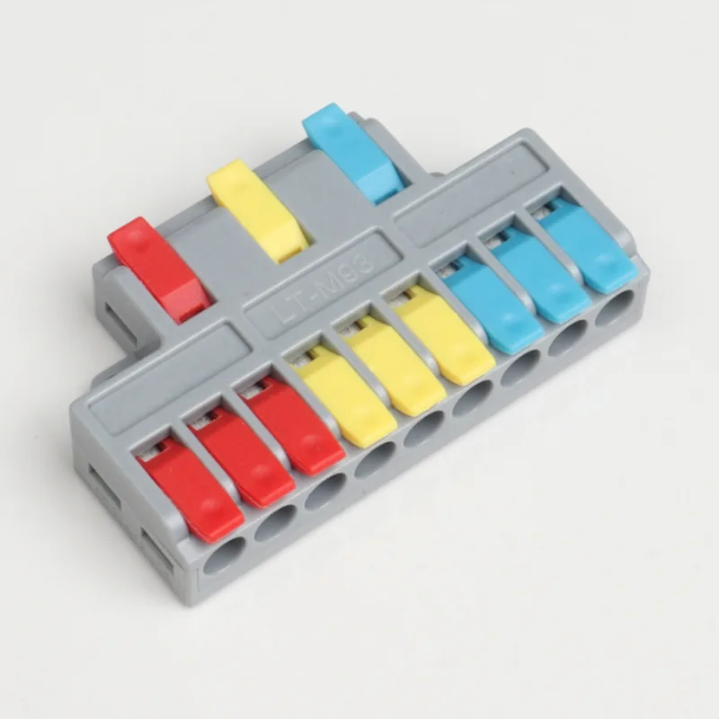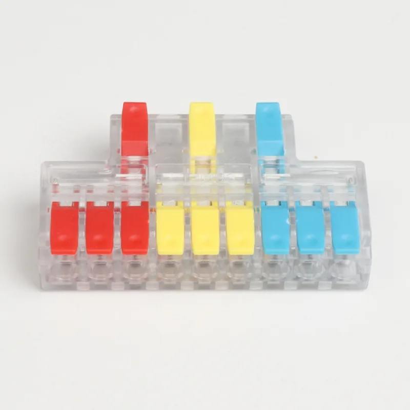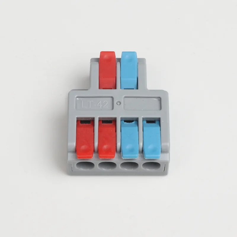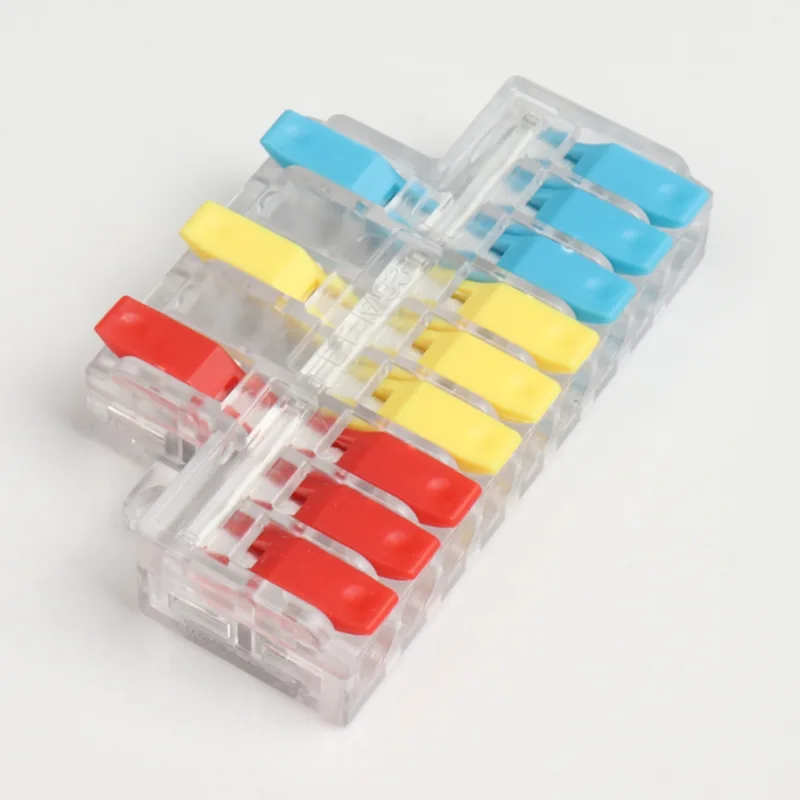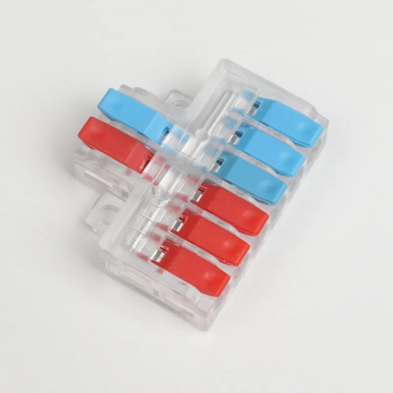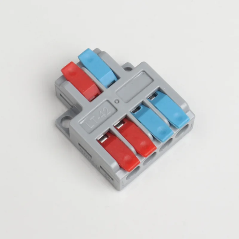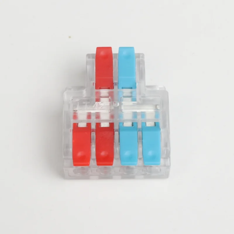 CHTAR é uma marca bem conhecida de conectores rápidos da China. Entre eles, os mini conectores rápidos de fio de emenda de duas entradas e quatro saídas produzidos são conectores com estrutura de entrada de dois fios e saída de quatro fios. Os tamanhos dos fios que ele conecta variam de 0,2 mm² a 4 mm². Esta minissérie é um conector de fio em miniatura em forma de T. Eles implementaram várias estruturas de filiais, como 2 dividido em 4, 2 dividido em 6, 3 dividido em 6, 3 dividido em 9, etc.